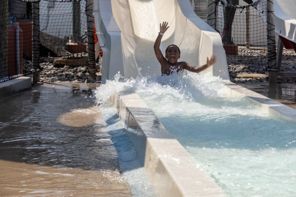 Pause the excitement of twists, turns, and splashing to recharge at Sharkey’s. Discover a tempting array of poolside favorites, from pizza and hot dogs to funnel cakes and ice cream. It’s the perfect pitstop to regroup, refuel, and quickly get back to the slides and attractions for more thrilling adventures!