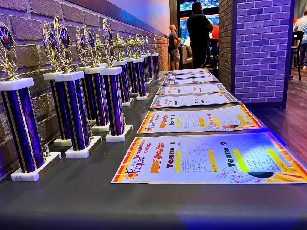 Team building will be organized by a Funplex Event Host, scoreboards created in advance with guest list, and a team trophy included with each organized activity.