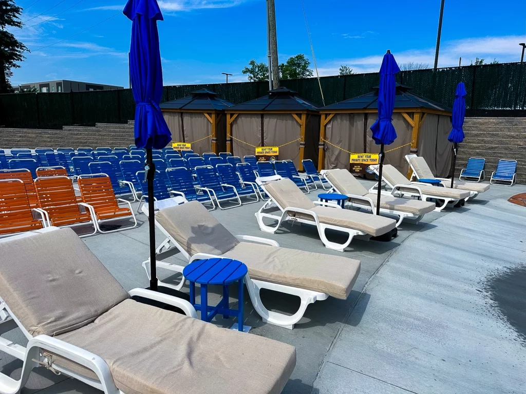 Elevate your experience at The Villas in the Splashplex Island section. Revel in a more spacious setting right next to the relaxation pool, perfect for up to 12 guests in each Villa. The rental includes tables, chairs, lounge furniture, a TV, Wi-Fi, a refrigerator stocked with bottled water upon arrival, and a dedicated cabana server for food and drink orders. You can also explore a special catering menu when booking for pre-ordered platters or trays through the event office.