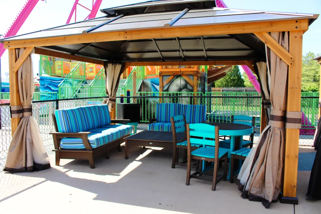 Get an exclusive, luxury resort-like experience where you can enjoy a little R&R while your kids soak up water park thrills! The Cabana Village is inside the Splashplex Waterpark right next to the speed slides. Each cabana includes tables and chairs, refrigerator with bottled water upon arrival, TV, Wifi, Ceiling Fan, as well as a dedicated cabana server to order food and drinks right to your area.