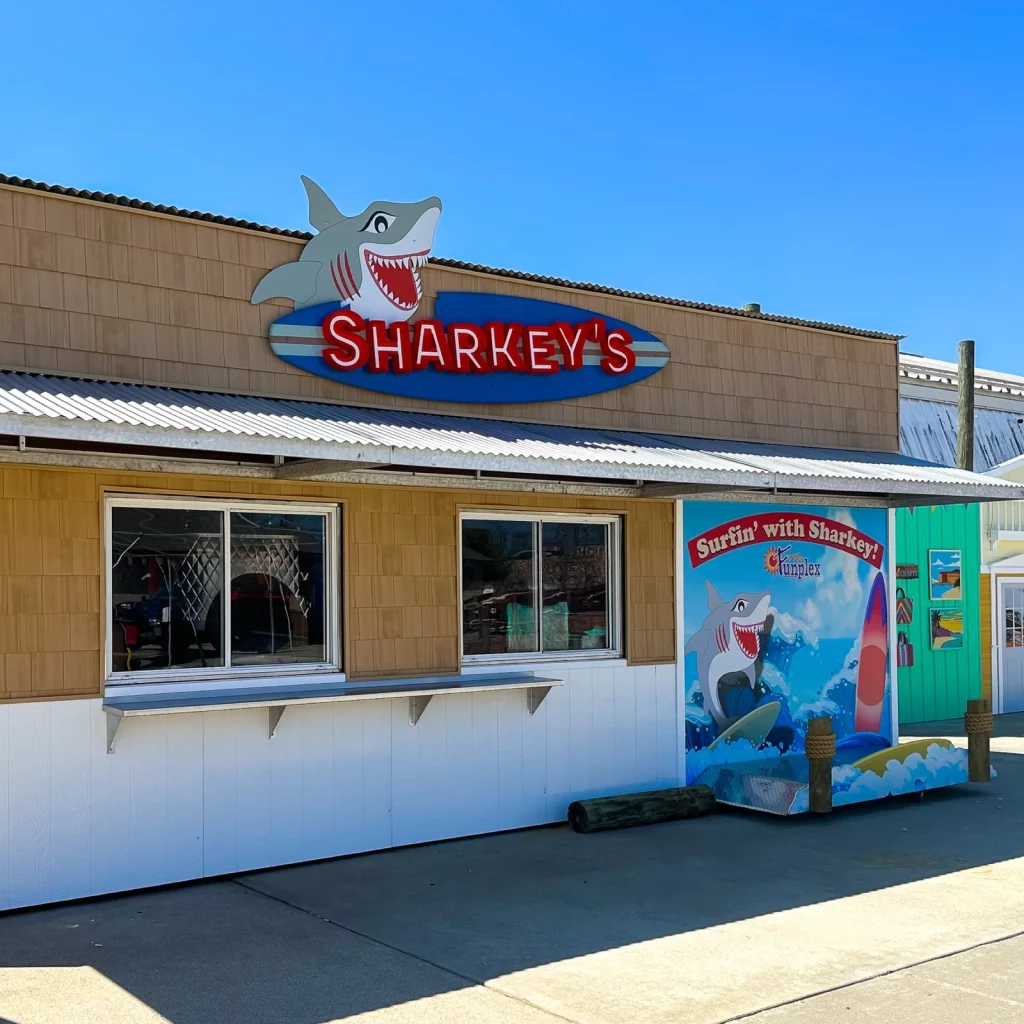 Beat the heat and grab a refreshing soda in a souvenir cup, ice cream, or even a cheeseburger meal with fries. Tables in the shade are available all around Sharkeys Café to enjoy your meal while cooling off.