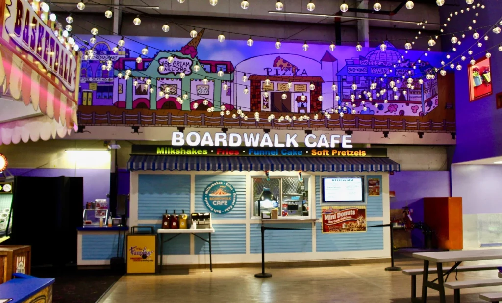 Walking down the boardwalk, you can smell the sweet and savory treats wafting through the air. Make a quick stop on your way to the rides for a bite of that brings you back to that feeling of being on the Jersey shore. The Boardwalk Café is right between the Lazer Tag hallway and the indoor boardwalk rides. Make a quick stop between adventures, grab a table to enjoy a snack, drink and much more!